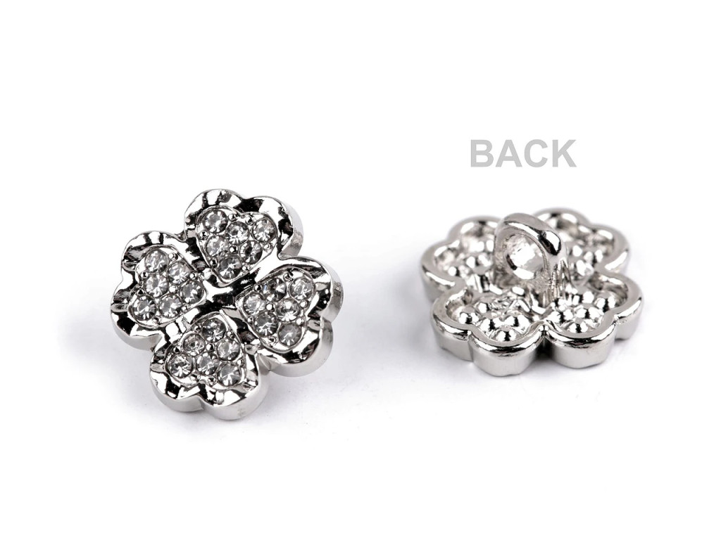 Csillogó négy levelű lóhere fém gomb – elegancia és szerencse egyben