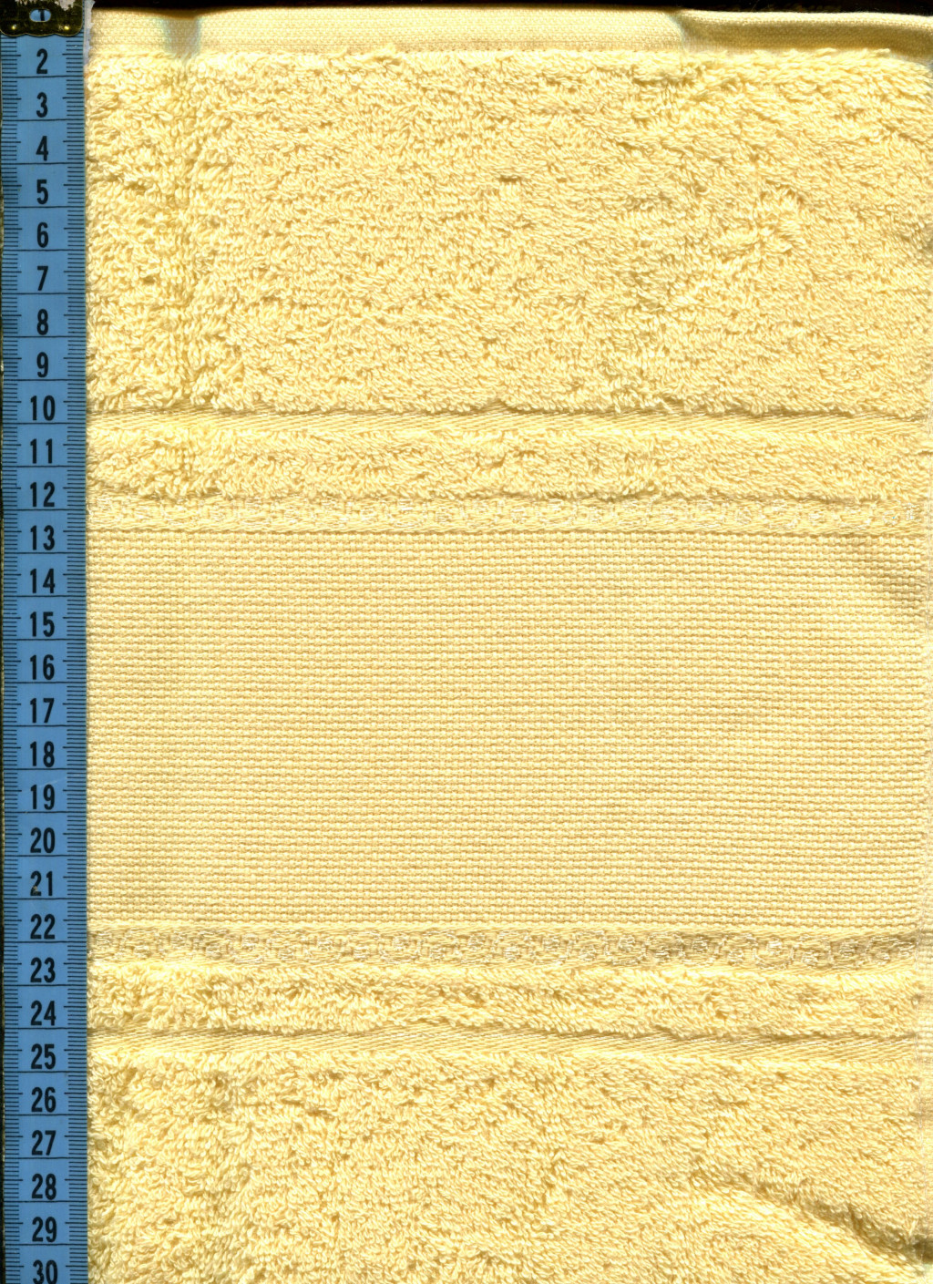 A törölköző egyik végén található hímezhető bordűr ideális keresztszemes minták elkészítéséhez. A minta teljes szélességben végigfut, így látványos, harmonikus díszítés készíthető rá.