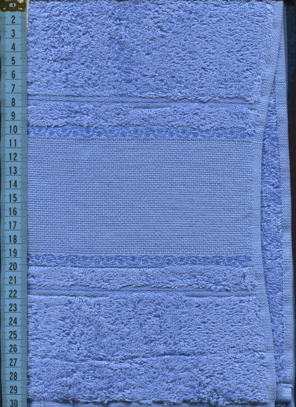 A törölköző egyik végén található hímezhető bordűr ideális keresztszemes minták elkészítéséhez. A minta teljes szélességben végigfut, így látványos, harmonikus díszítés készíthető rá.