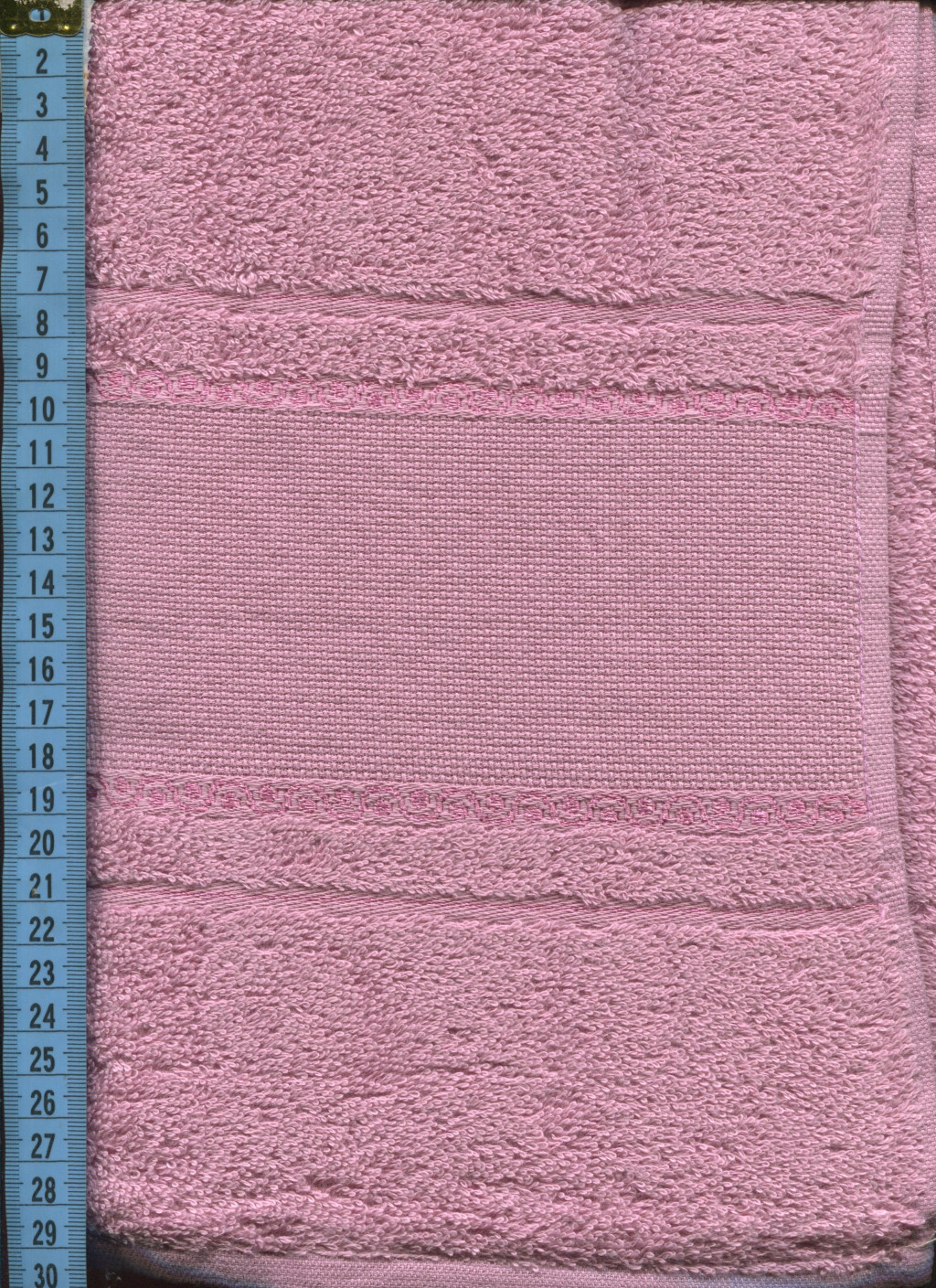A törölköző egyik végén található hímezhető bordűr ideális keresztszemes minták elkészítéséhez. A minta teljes szélességben végigfut, így látványos, harmonikus díszítés készíthető rá.