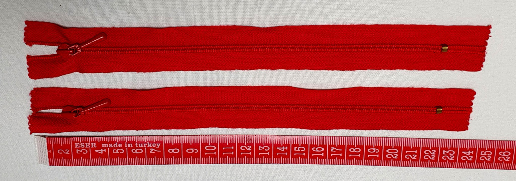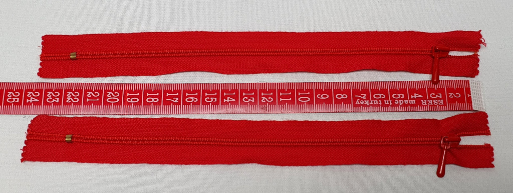 Élénk piros színű, nem bontható spirál húzózár, 20 cm hosszúságban, textil része pamut.