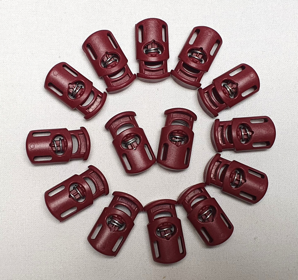 Ez a praktikus rugós zsinórszorító fék tökéletes választás gumis zsinórok rögzítéséhez, legyen szó kabátokról, kapucnikról, sporttáskákról vagy egyéb textiltermékekről. A strapabíró műanyagból készült bordó színű rögzítő könnyen kezelhető, stabil tartást biztosít, és megakadályozza a zsinór elcsúszását.