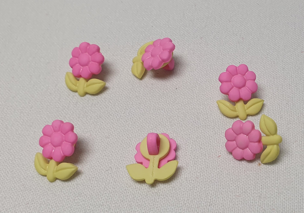 Vidám, élénk hangulatú virág formájú gombok több színváltozatban (sárga, rózsaszín, barack). Alsó lyukas, így könnyen felvarrhatók bármilyen anyagra. Kiválóan használhatók gyerekruhák, kiegészítők, táskák, kézműves dekorációk díszítésére, de akár scrapbookhoz vagy egyedi ajándéktárgyakhoz is.
