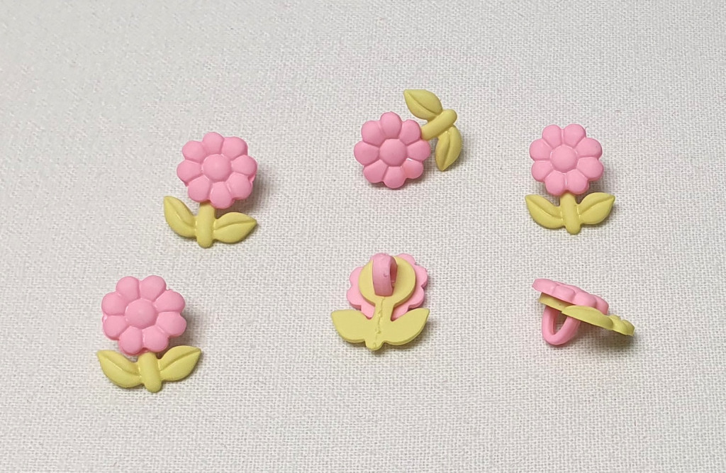 Vidám, élénk hangulatú virág formájú gombok több színváltozatban (sárga, rózsaszín, barack). Alsó lyukas, így könnyen felvarrhatók bármilyen anyagra. Kiválóan használhatók gyerekruhák, kiegészítők, táskák, kézműves dekorációk díszítésére, de akár scrapbookhoz vagy egyedi ajándéktárgyakhoz is.